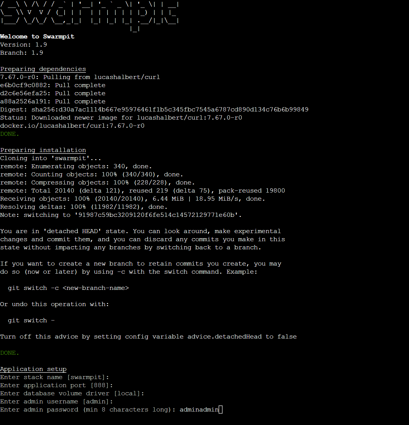 매뉴얼에 나온대로 설치를 진행하면 필요한 이미지를 받아서 설치하고, swarm에 배포를 자동으로 진행합니다.