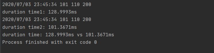 각각 100, 1, 10을 더하는 코드이며, sleep time을 각각 100ms, 1ms, 10ms를 주었습니다. 순차적으로 실행하게 된다면 실행시간은 111ms 이상 걸리게 될 것입니다.