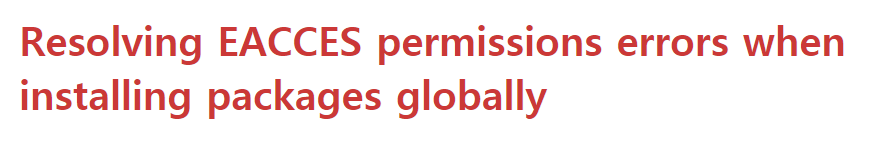 그러던 중 NPM 공식 문서 중 “Resolving EACCES permissions errors when installing packages globally”를 발견하였습니다. 문제를 해결하는 방법을 두가지를 제시하고 있는데,