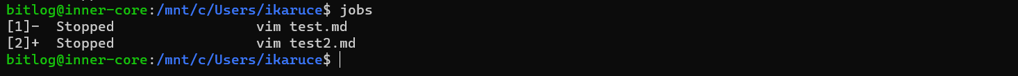 만약 중지된 프로세스가 있는 상태에서 다시 파일을 편집 중에 shell로 나왔다면, jobs 명령으로 현재 중지된 프로세스를 확인할 수 있습니다.