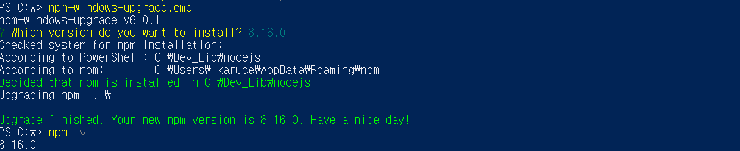 > npm install -g npm-windows-upgrade