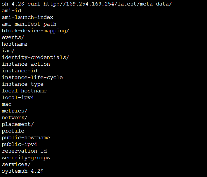 $ curl http://169.254.169.254/latest/meta-data/