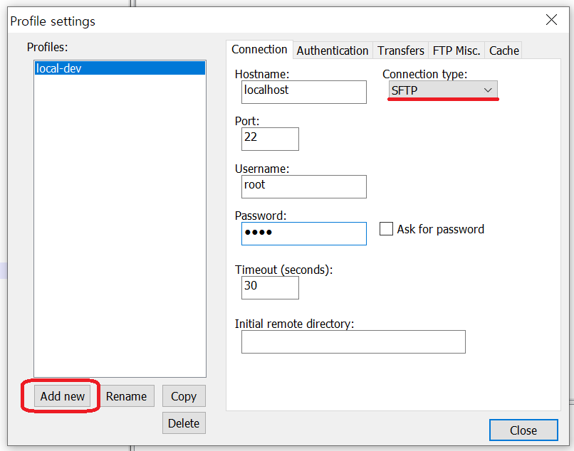 이제 플러그인-> NppFTP -> Show NppFTP window 를 선택하고, NtpFTP 창에서 설정 버튼을 눌러 profile설정에서 add new 버튼으로 프로필을 추가해 줍니다.