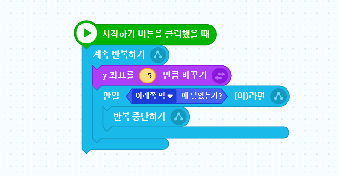 ( 원래는 if else 대신, if !벽을 쓰고 싶었는데, 블록은, "<<<벽에 닿았는가?> 가 아니다> 라면>" 이렇게 되어서 맘에 들지 않았습니다. )