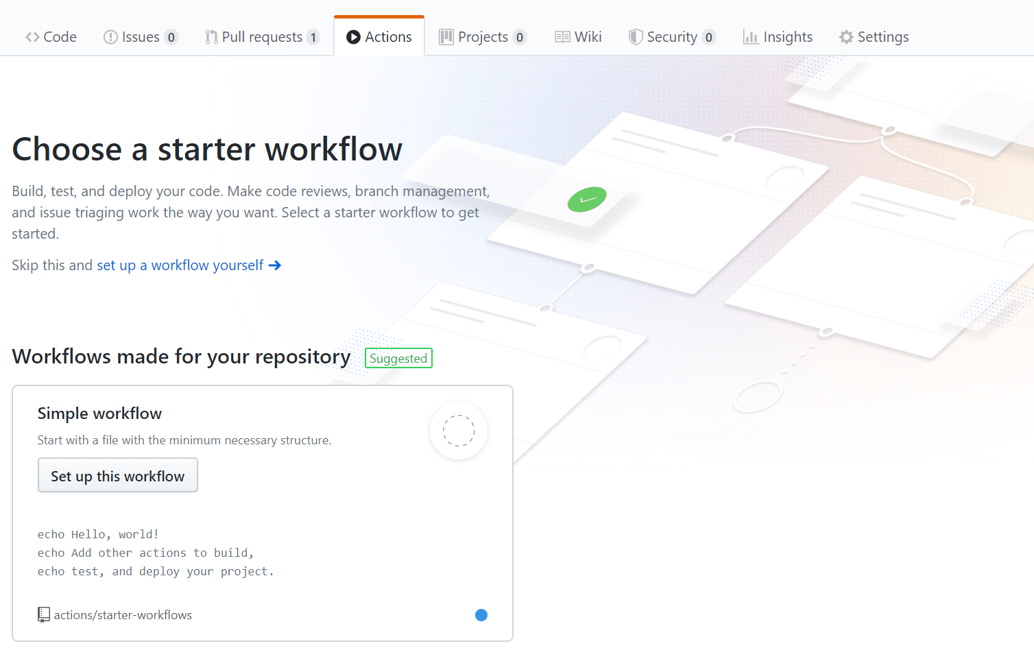 이제 Actions를 클릭하고 Action을 추가해 줍니다. 액션 설정 화면에서 set up a workflow yourself를 클릭합니다.