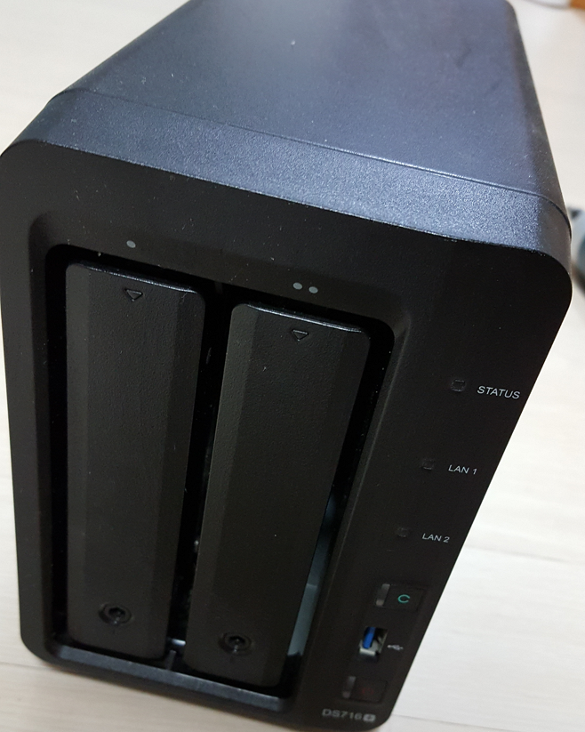 우선 NAS의 전원을 끄고 설치되어있는 좁고 구석진 장소에서 넓은 거실 한가운데로 꺼내왔습니다.