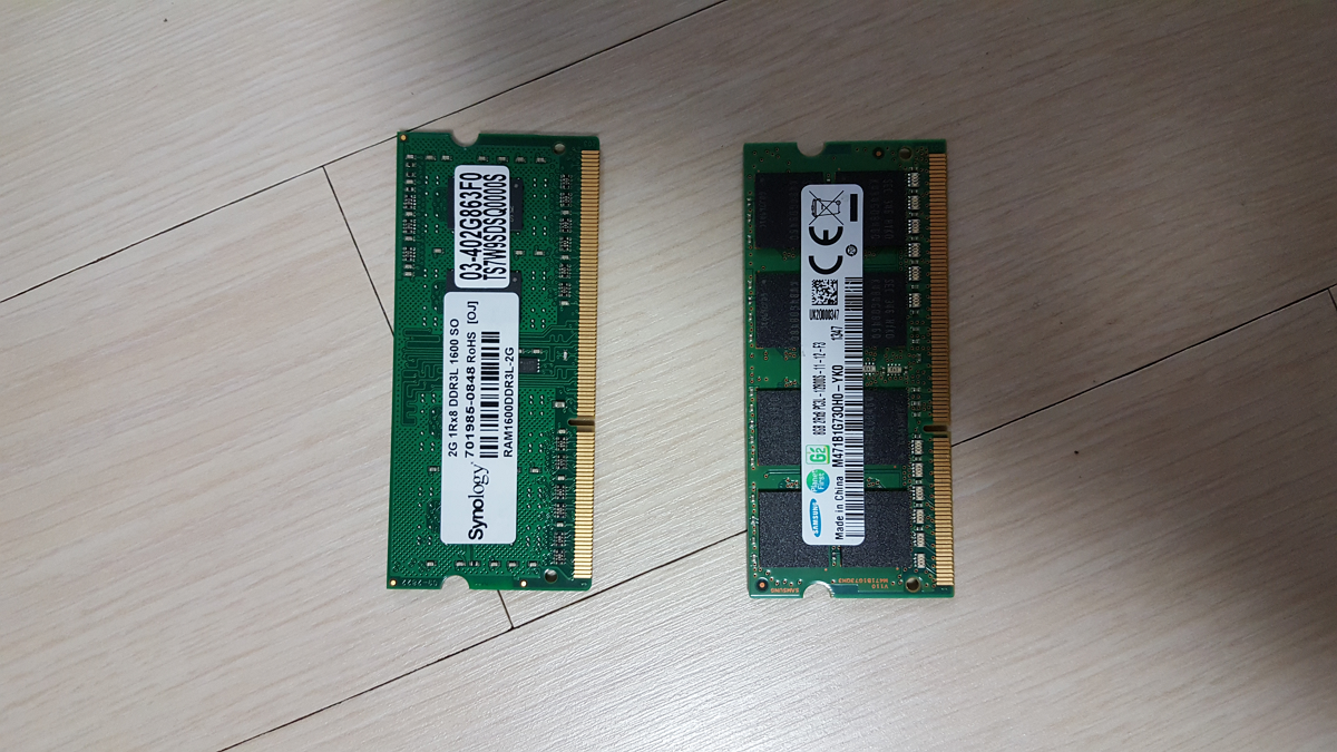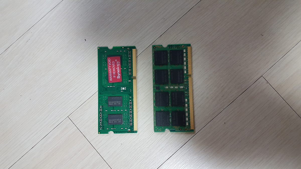 그렇게 보관만 하던 중에, 아는 사람과 주가를 스크랩하는 배치 잡을 어떻게 돌릴 것인가에 대해 토론을 하다가 NAS에서 Docker를 띄우고 거기에 스크랩하는 애플리케이션을 돌리면 어떻겠냐는 아이디어가 나왔는데, 문득 NAS의 구입 시기가, 이전에 사용하던 노트북의 구매 시기가 비슷했다는 게 떠올랐습니다. 혹시 남는 메모리를 NAS에 장착하는 게 가능하지 않을까? 하는 생각이 들어 시도해봤습니다.