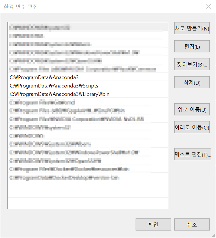다음과 같이 환경변수에 아나콘다 내의 라이브러리 경로를 추가해 주면 됩니다. ( 아나콘다 설치 경로는 변경될 수 있습니다.)