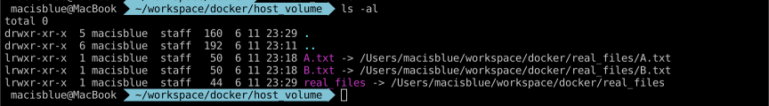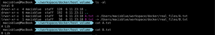 $ ln -s $PWD/B.txt ../host_volume/B.txt